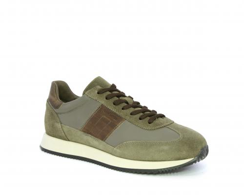 Sneakers con lacci, fondo in gomma, tomaia in camoscio e parti in pelle, sottopiede in tessuto, fodera interna in pelle, fusbet estraibile in poliuretano con DryGo che svolge una duplice azione assorbire l'umidità quando si indossa la scarpa e si asciuga rapidamente quando si toglie la calzatura, inoltre è dotato di memory per fornire confort e benessere.