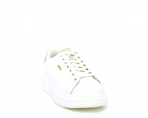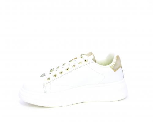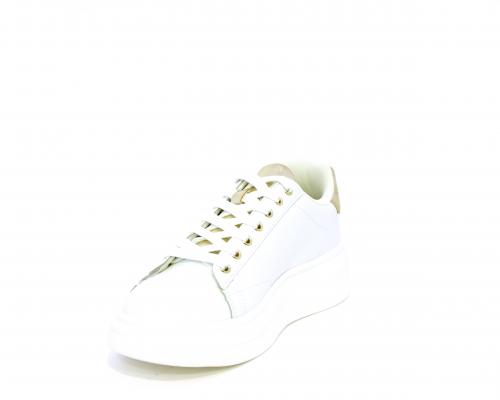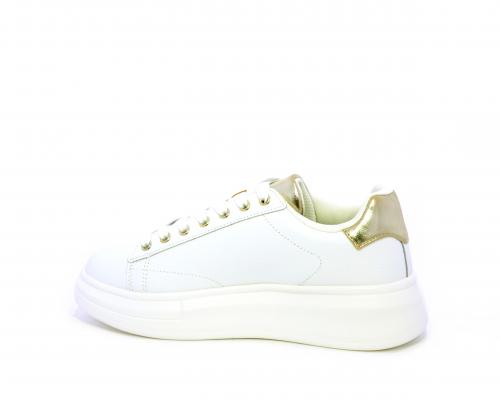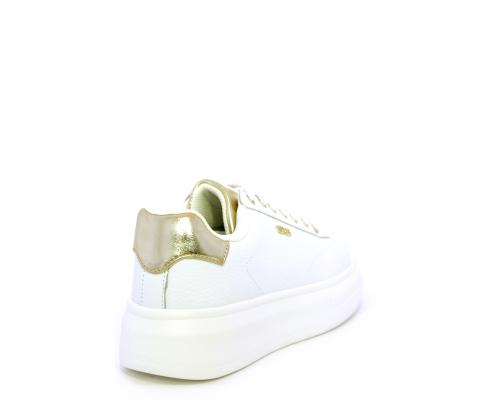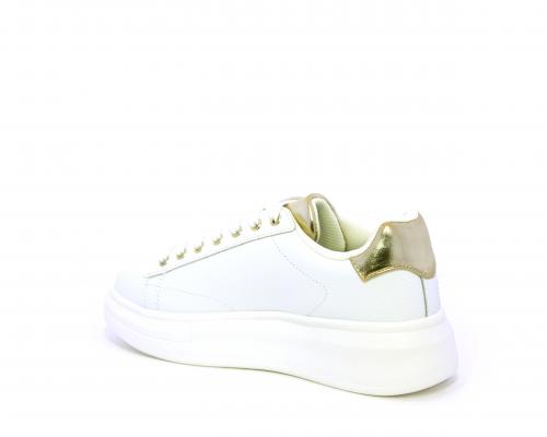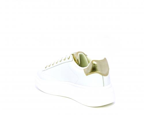 Sneakers con lacci, platform in gomma, tomaia in pelle con inserto oro dietro al tallone, sottopiede e fodera interna in tessuto, fusbet estraibile con memory.