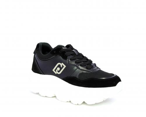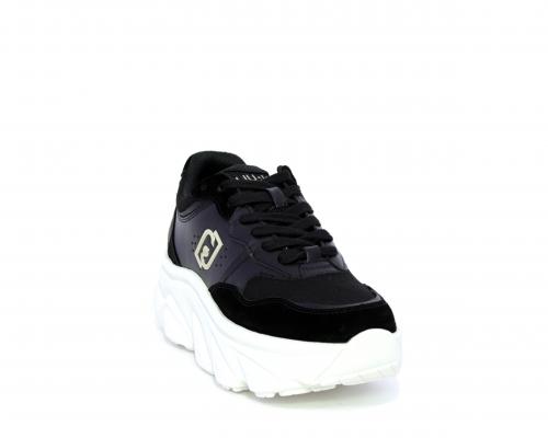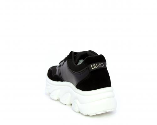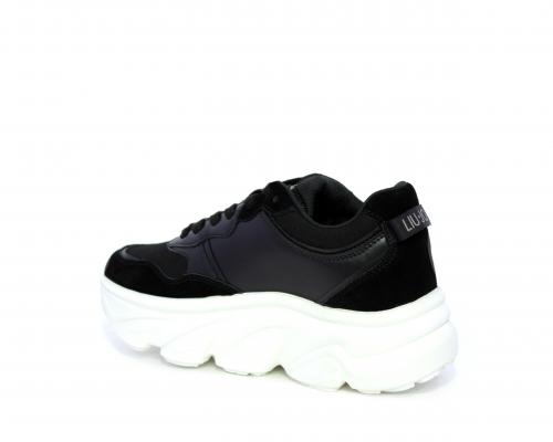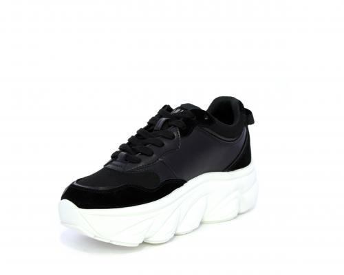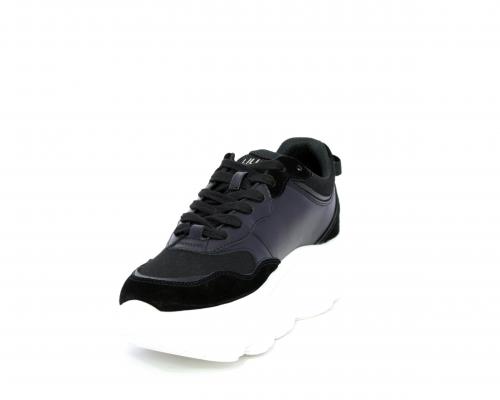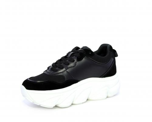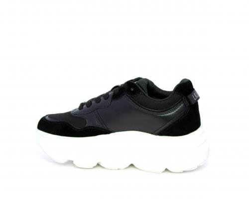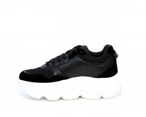 Sneakers con lacci, platform in gomma, tomaia in pelle con parti in nabuk, sottopiede e fodera interna in tessuto, fusbet estraibile con memory.
