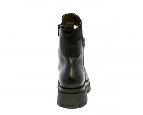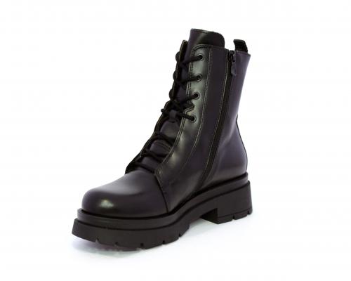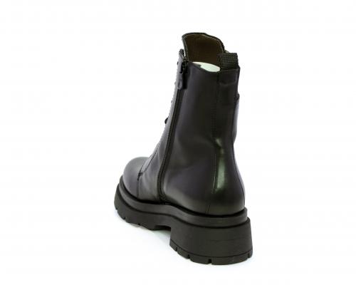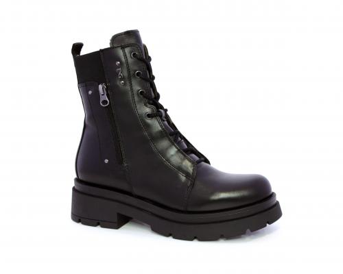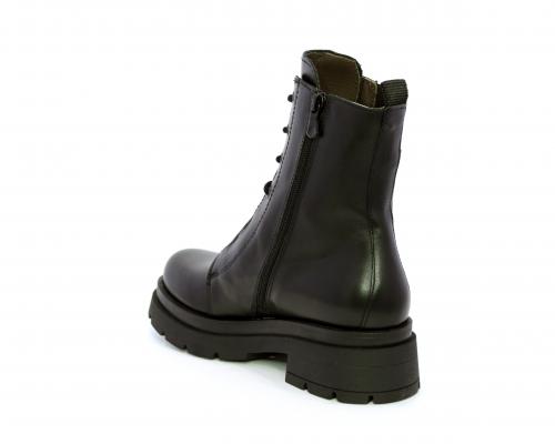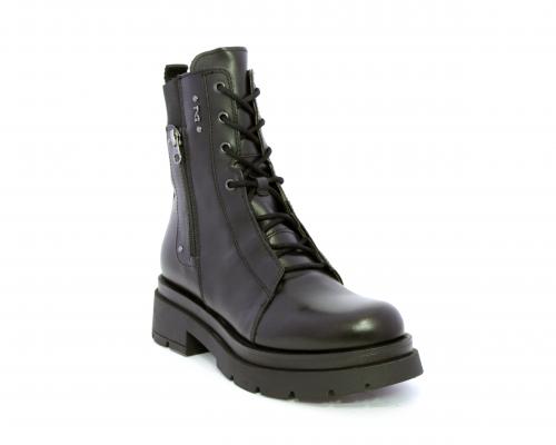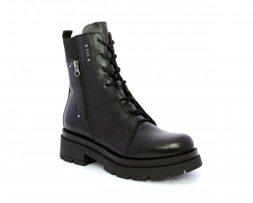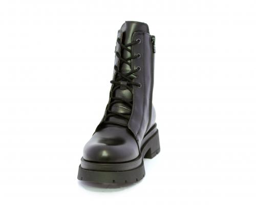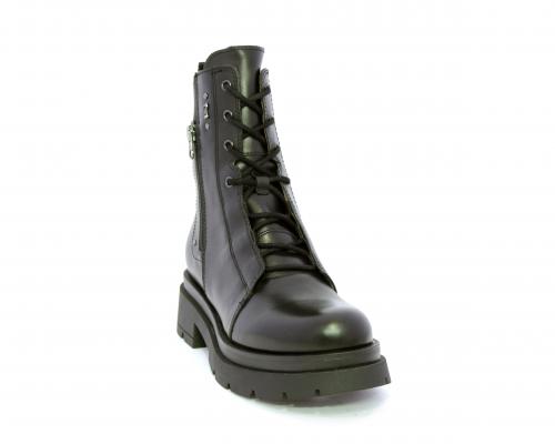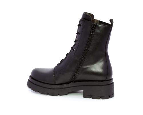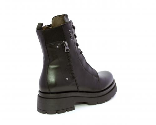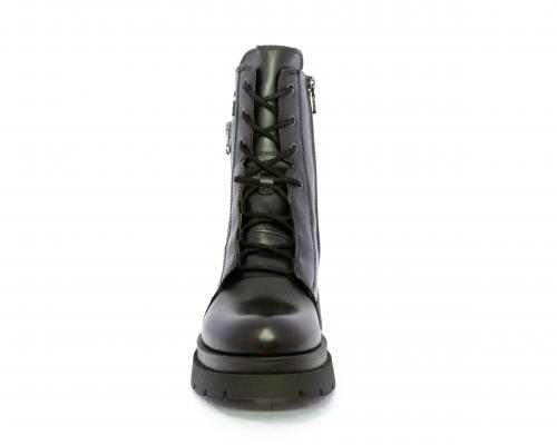 Tronchetto con lacci e chiusura laterale, tacco e plateaux in gomma, tomaia in pelle con rifitiniture in acciaio ed elastico laterale intorno alla caviglia, sottopiede e fodera interna in pelle,fusbet con MEMORY che si modella al piede garantendo confort e benessere.