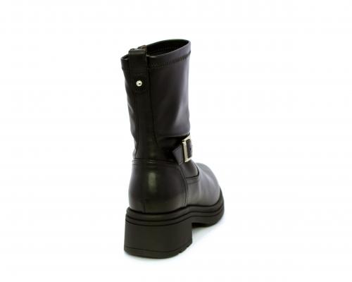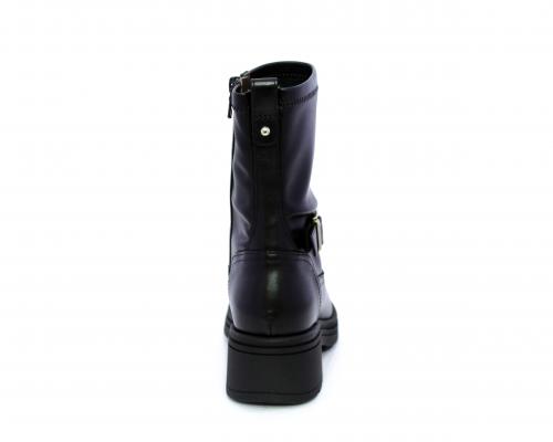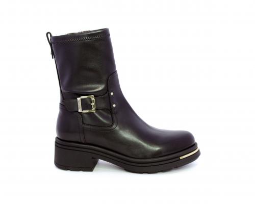 Stivaletto con chiusura laterale, tacco e plateaux in gomma, tomaia in pelle con rifiniture in oro e la parte della tomaia intorno alla caviglia è in pelle elasticizzata, sottopiede in tessuto, fodera interna in pelle e parte intorno alla caviglia in tessuto, fusbet in poliuretano Dry-Go, che ha la capacità di assorbimento del sudore e rapida asciugatura, inoltre offre l'innovativa funzione Memory che si modella al piede donando confort e benessere.