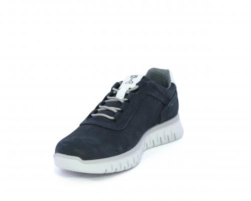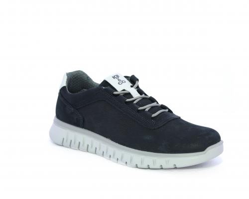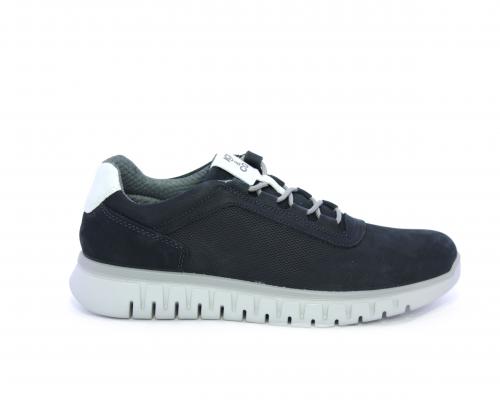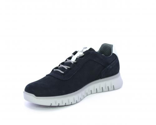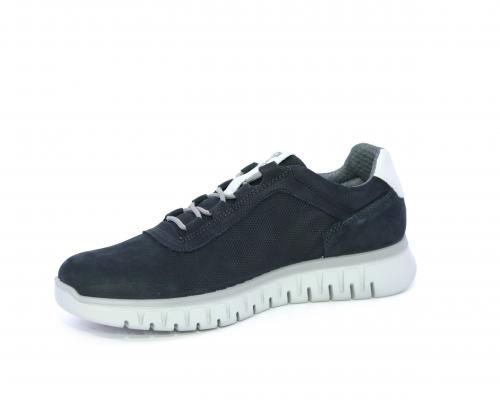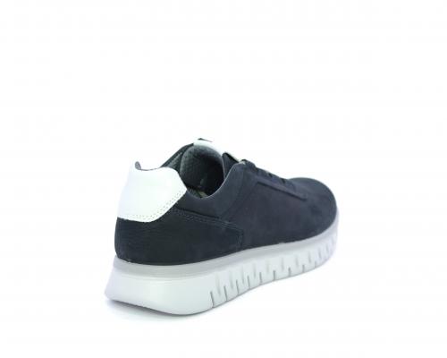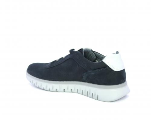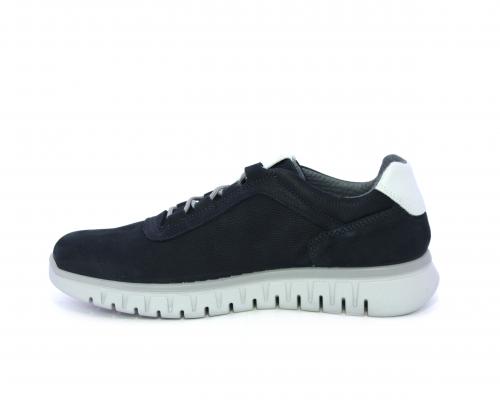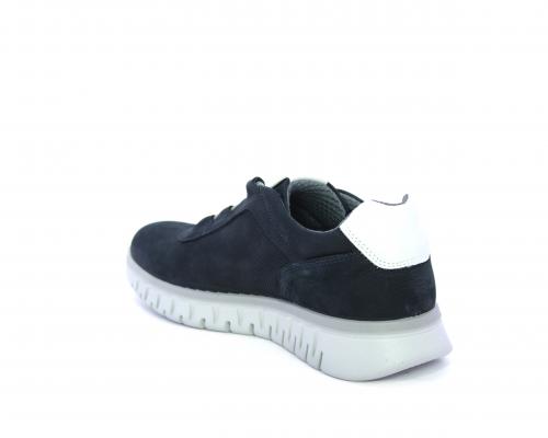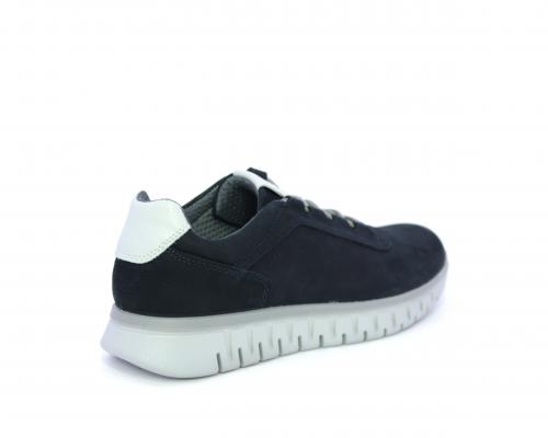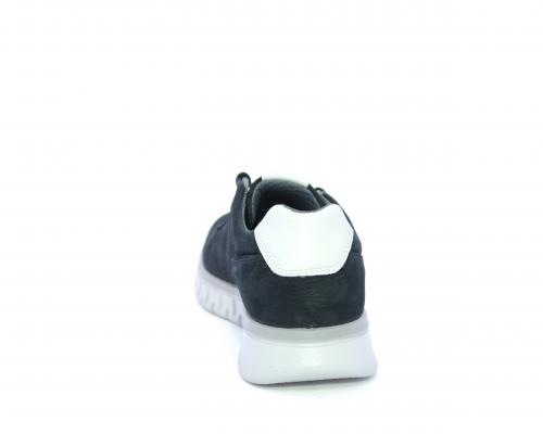 Sneakers con lacci, fondo in gomma grigio, tomaia in nabuk e parte in pelle bianca dietro al tallone, sottopiede in pelle, fodera interna in tesuto, fusbet estraibile con memory foam che attenua i micro-impatti al camminare.