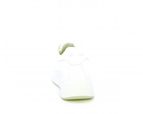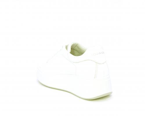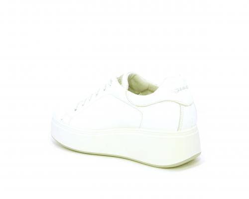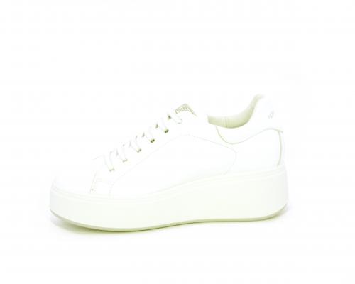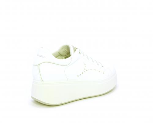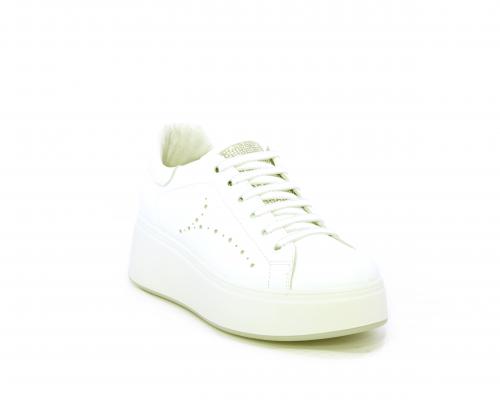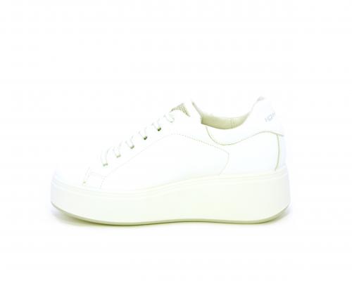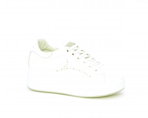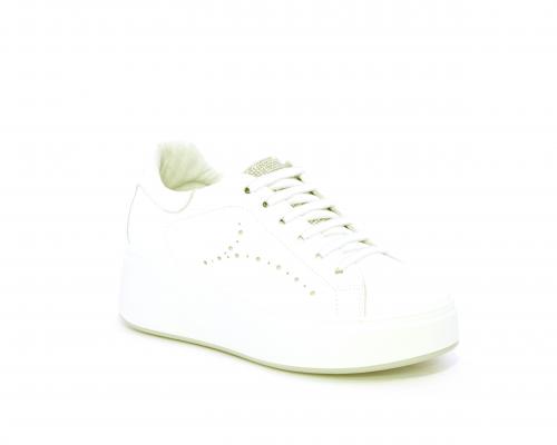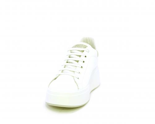 Sneakers con lacci, platfoarm in gomma bianco, tomaia in pelle e fascia di brillantini sulla linguetta della calzatura, sottopiede e fodera interna in pelle, fusbet estraibile.