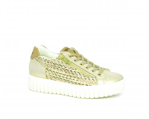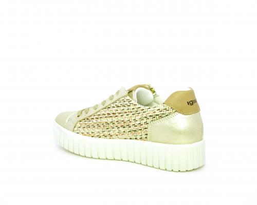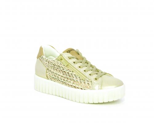 Sneakers con lacci e chiusura laterale per facilitare la calzata, platfoarm in gomma, tomaia in pelle e parte in tessuto, sottopiede in pelle, fodera interna in tessuro, fusbet estraibile traspirante.