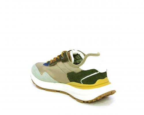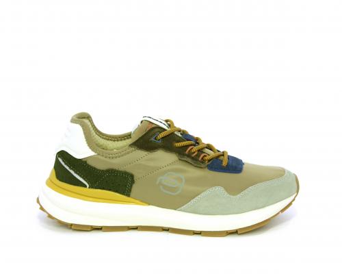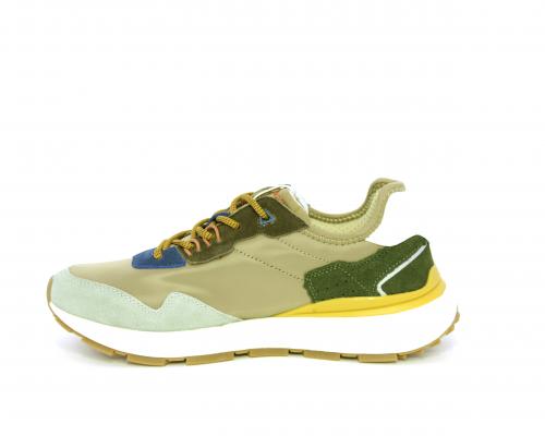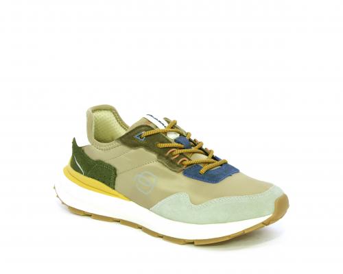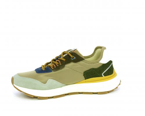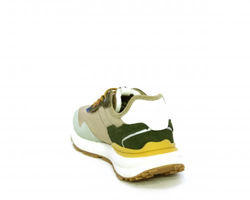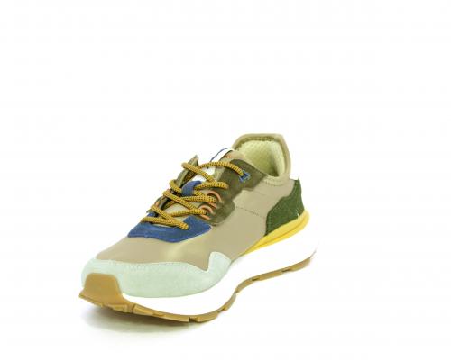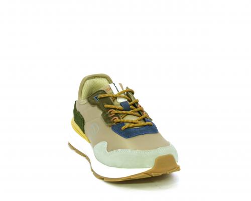 Sneakers con lacci, fondo in gomma, tomaia in tessuto con parti in suede colorate, sottopiede e fodera interna in tessuto traspirante, fusbet estraibile con memory foam per donare confort durante la camminata.