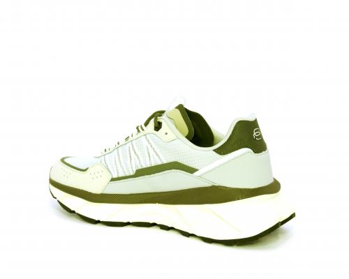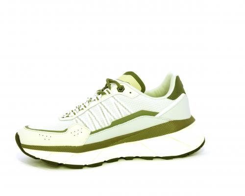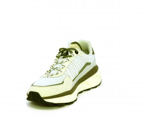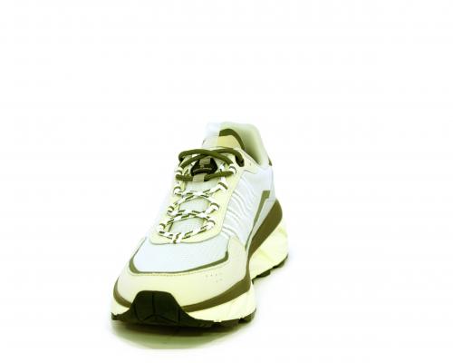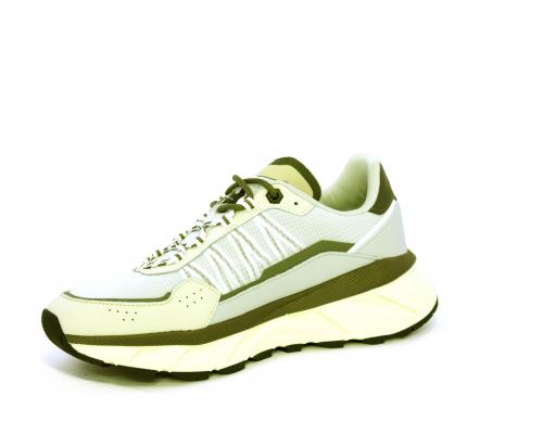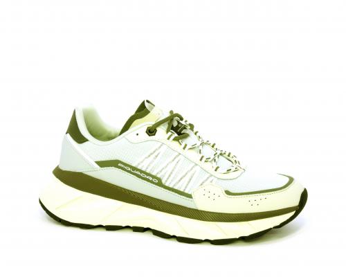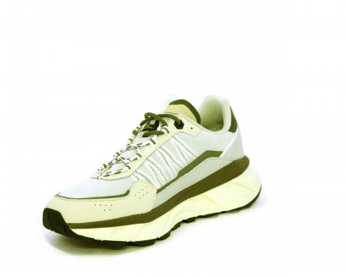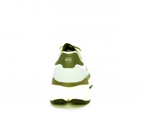 Sneakers con doppio laccio un laccio verde e un laccio bicolor di ricambio, fondo in gomma, tomaia in tessuto con parti in pelle, sottopiede e fodera interna in tessuto traspirante, fusbet estraibile con memory foam per donare confort durante la camminata.