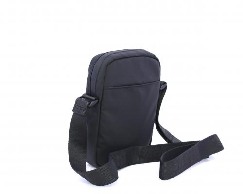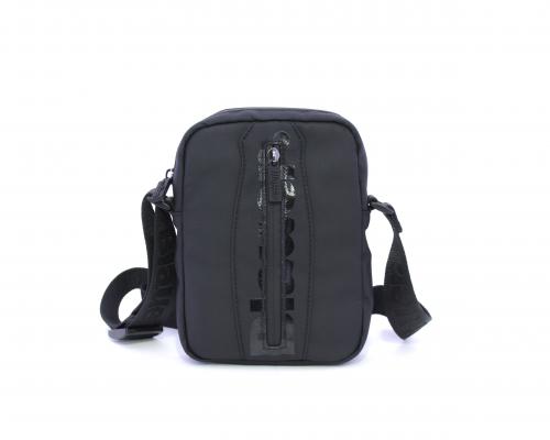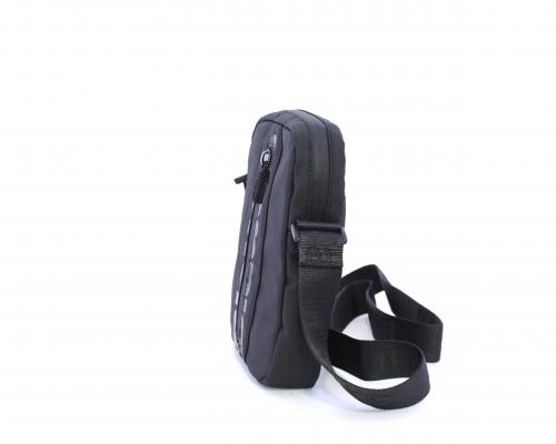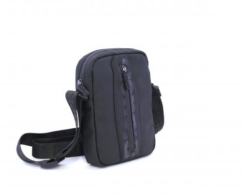 Tracolla in tessuto, taschino verticale nella parte anteriore con stampa con logo, chiusura generale con cerniera, tracolla regolabile in tessuto con logo inciso.