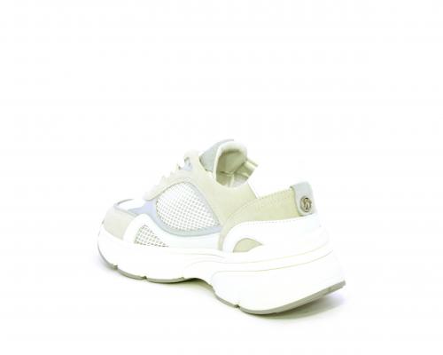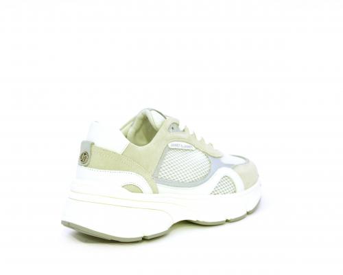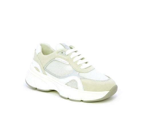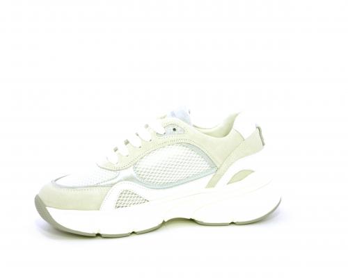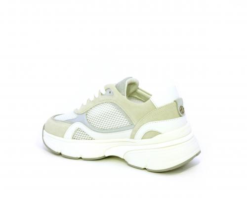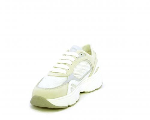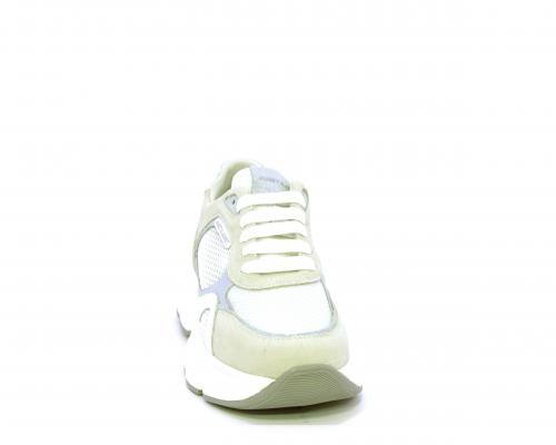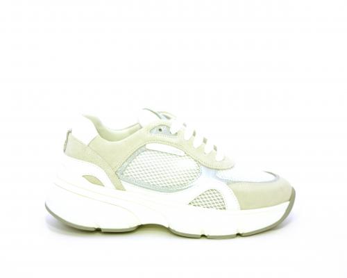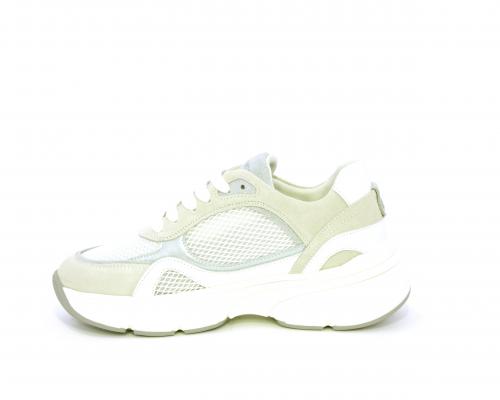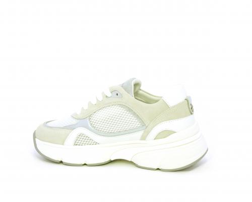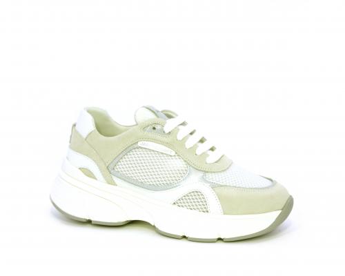 Sneakers con doppio laccio di ricambio, zeppa e plateaux in gomma bianca, tomaia in suede con parti in tessuto microforato, sottopiede in pelle, fodera interna in tessuto, fusbet estraibile con memory per donare confort durante la camminata.