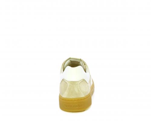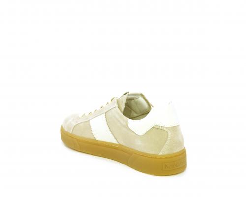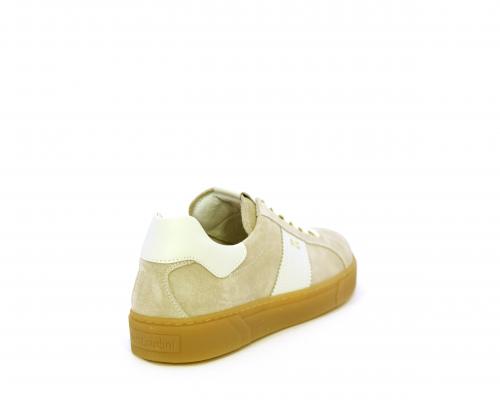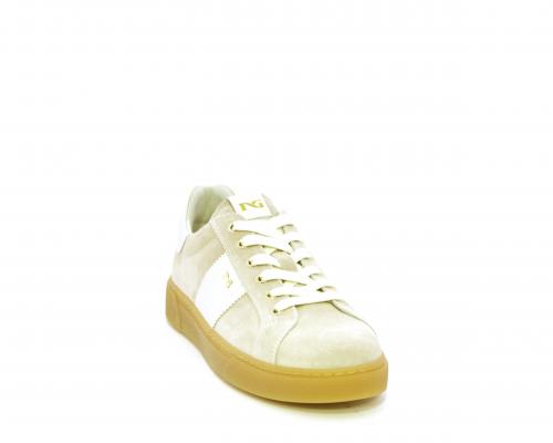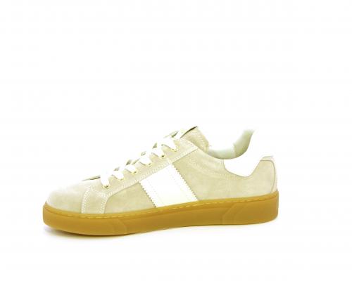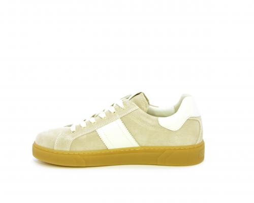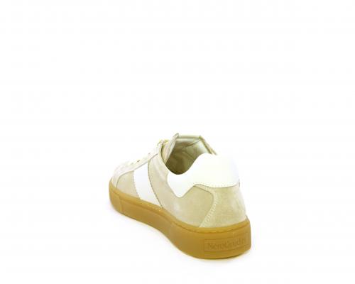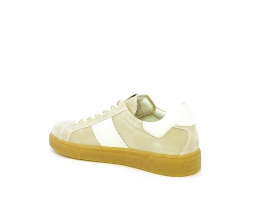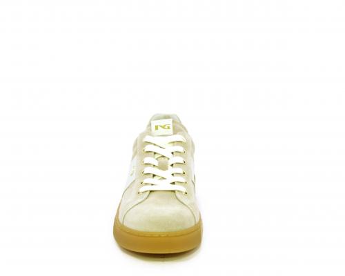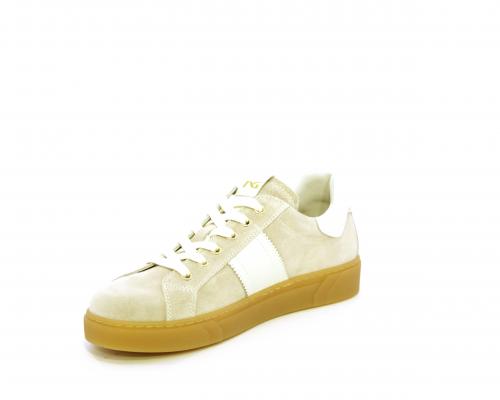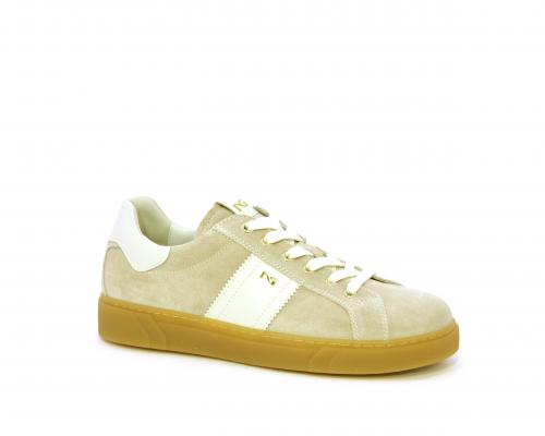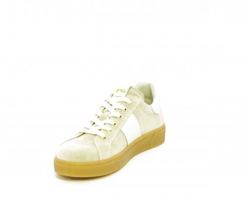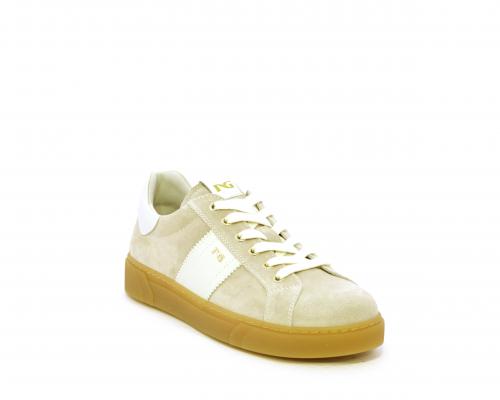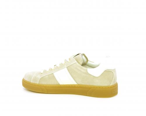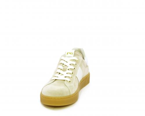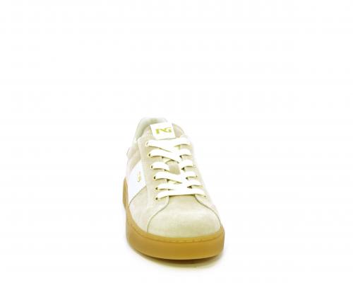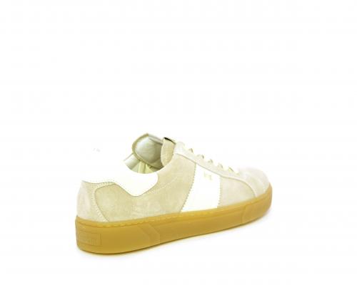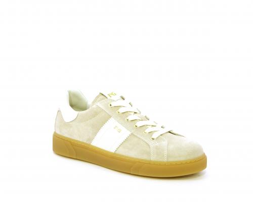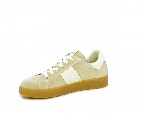 Sneakers con lacci, platform in gomma, tomaia in suede con banda laterale in pelle bianca, sottopiede e fodera interna in pelle, fusbet estraibile in poliuretano Dry-Go che svolge una doppia azione assorbe il sudore e lo asciuga rapidamente, mantenendo il piede sempre asciutto, inoltre il fusbet è dotato di memory ed elevato assorbimento degli urti donando confort e benessere.