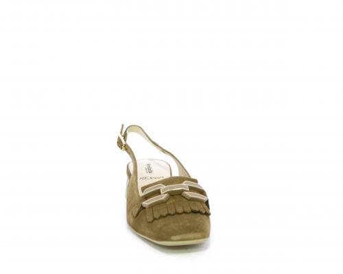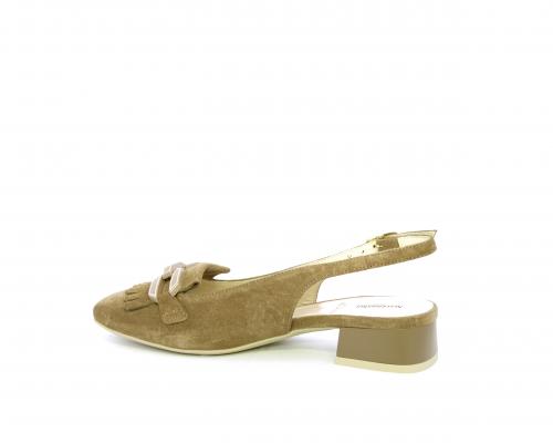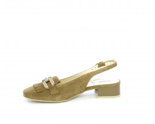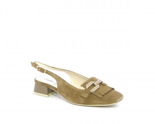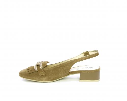Scarpa modello chanel, fondo in gomma, tacco largo, tomaia in suede fibbia bicolor e lateralmente fibbia regolabile, sottopiede e fodera interna in pelle, fusbet dotato di memory ed elevato assorbimento degli urti donando confort e benessere.