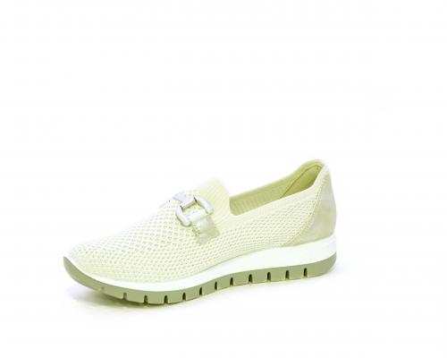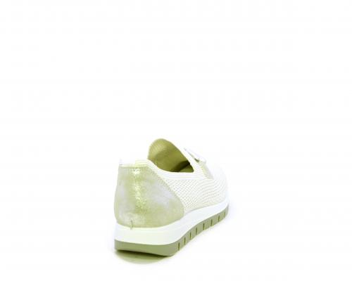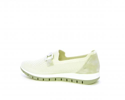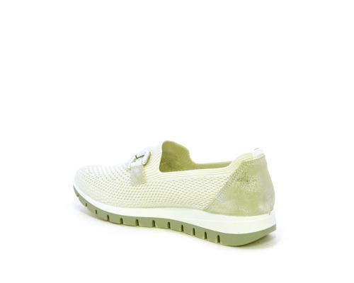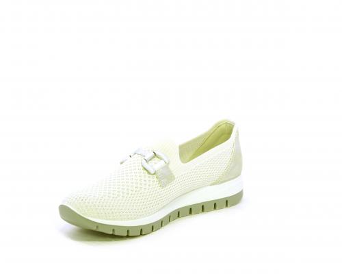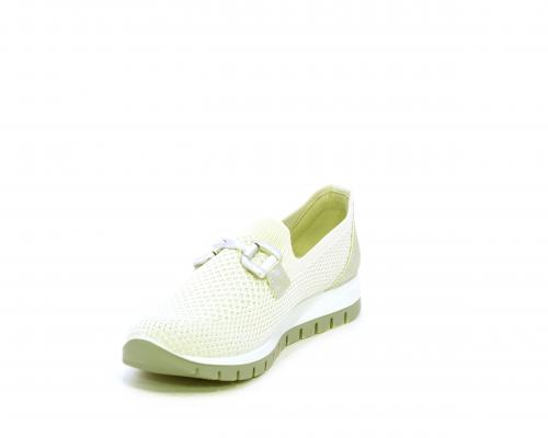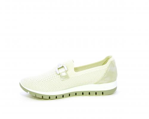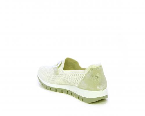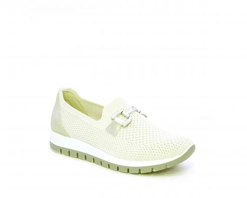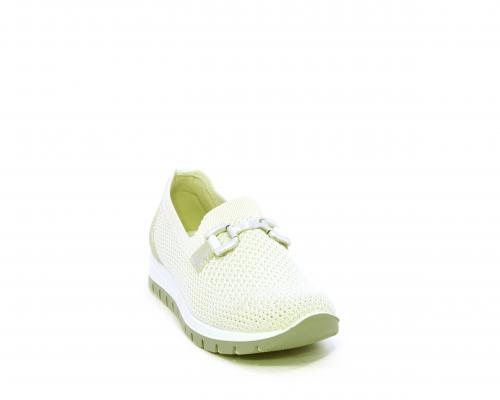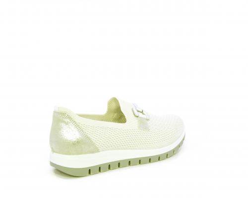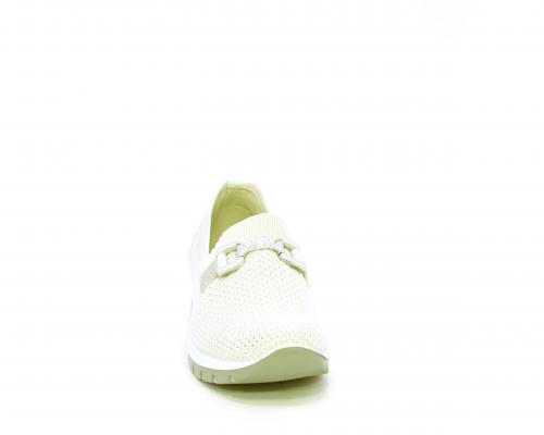 Sneakers senza lacci, fondo in gomma, tomaia in tessuto elasticizzato, sottopiede in pelle, fusbet estraibile.