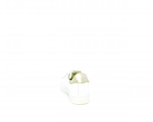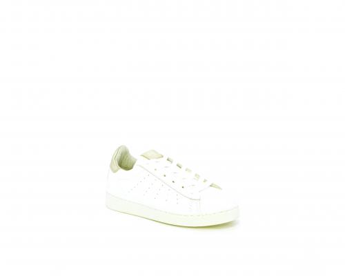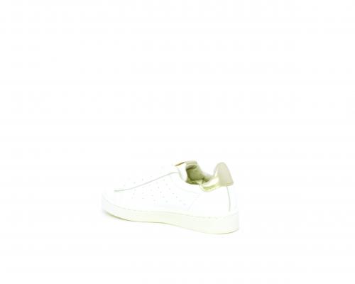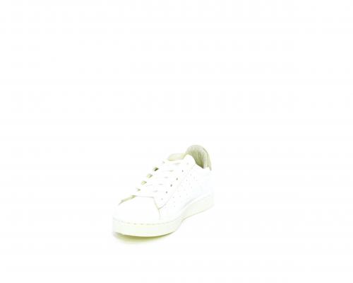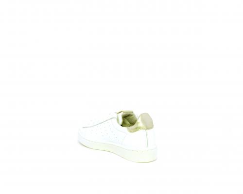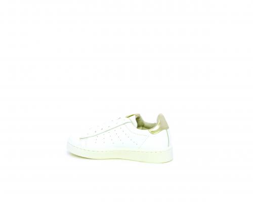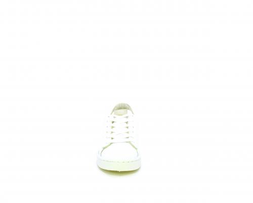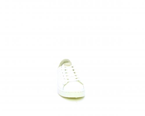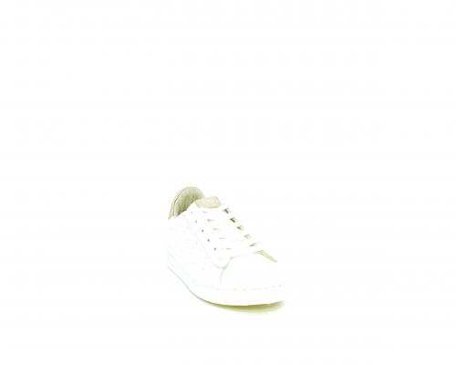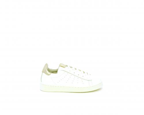 Sneakers con lacci, fondo in gomma, tomaia in pelle e dietro al tallone inserto in pelle color platino, sottopiede in pelle, fodera interna in pelle e tessuto, fusbet estraibile con memory .