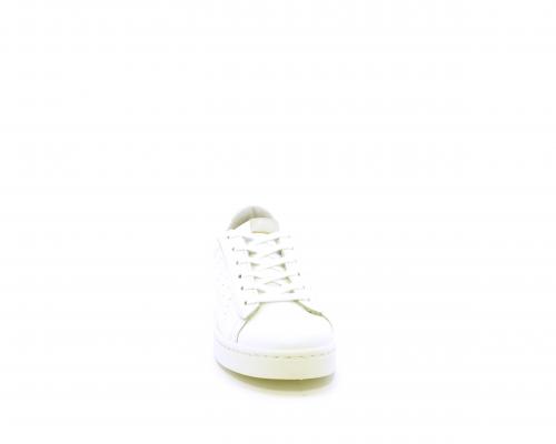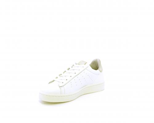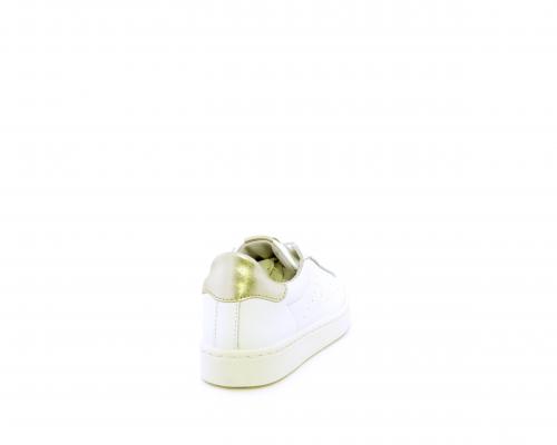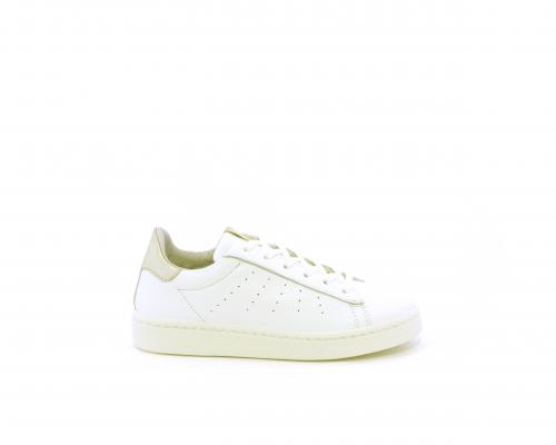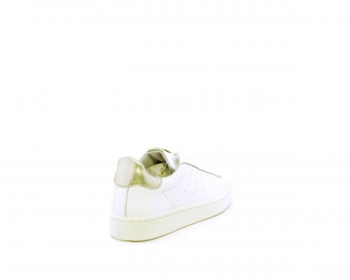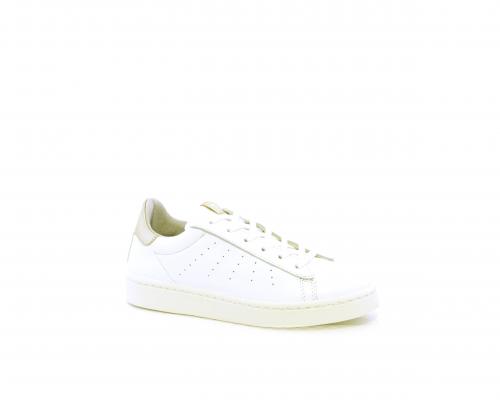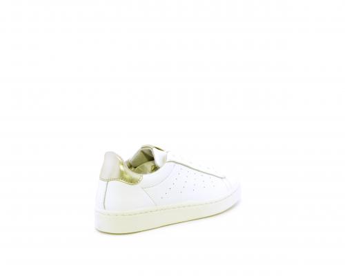 Sneakers con lacci, fondo in gomma, tomaia in pelle e dietro al tallone inserto in pelle color platino, sottopiede in pelle, fodera interna in pelle e tessuto, fusbet estraibile con memory .