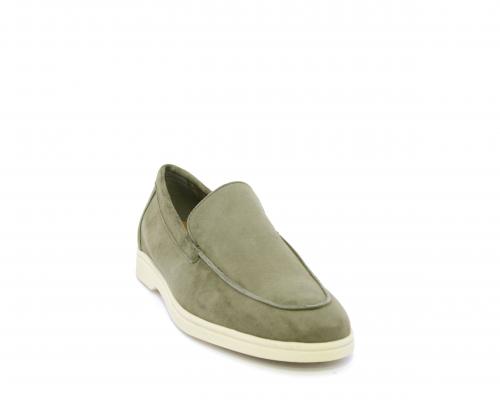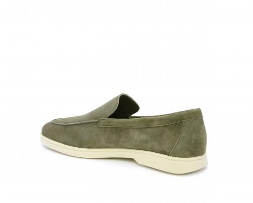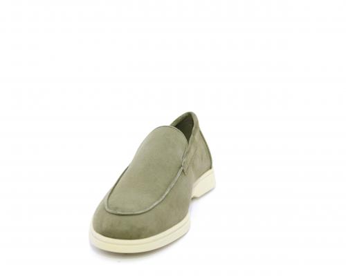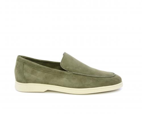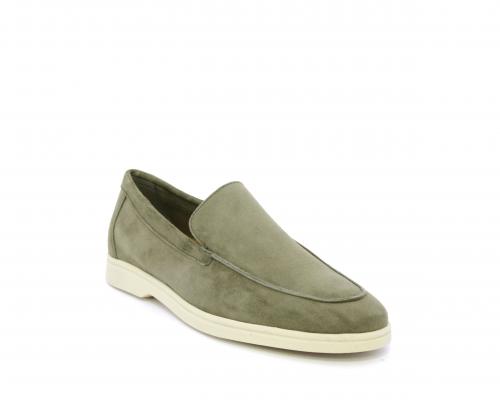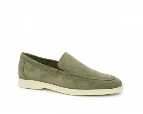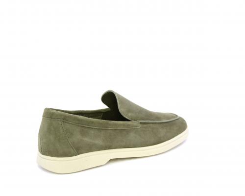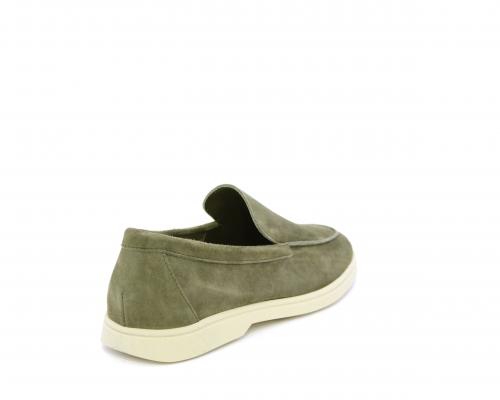 Mocassino fondo in gomma, tomaia in daino timo, sottopiede e fodera interna in pelle, fusbet estraibile con memory foam per donare confort durante la camminata.