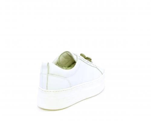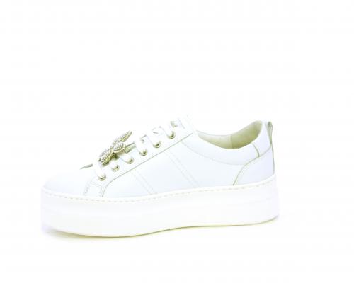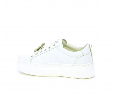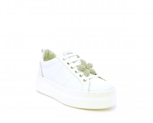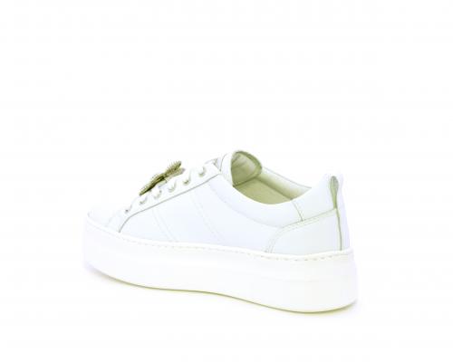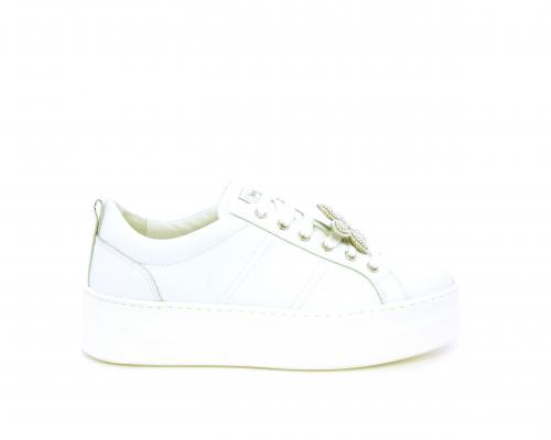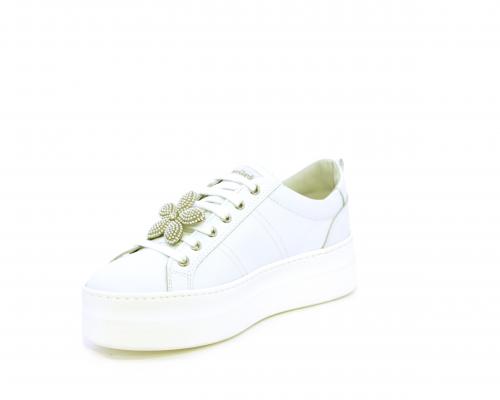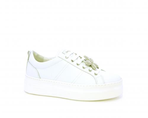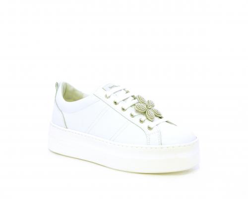 Sneakers con lacci, platform in gomma, tomaia in pelle con accessori removibili nei lacci, sottopiede e fodera interna in pelle, fusbet estraibile in poliuretano Dry-Go, che oltre a svolgere un'azione di assorbimento del sudore e rapida asciugatura mantenendo il piede sempre asciutto, adesso offre anche la funzione memory che modellandosi delicatamente al piede dona confort e benessere.