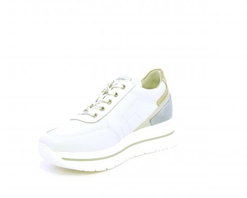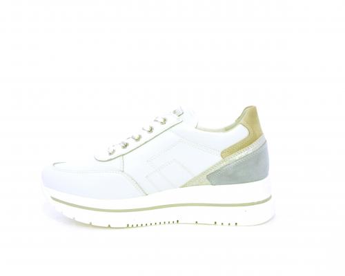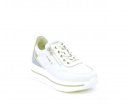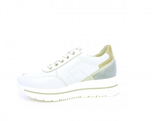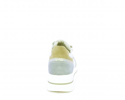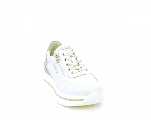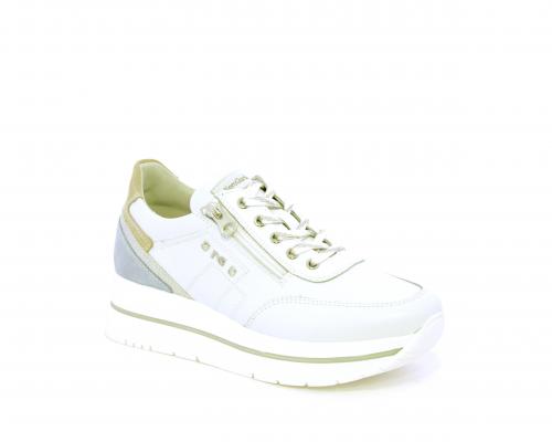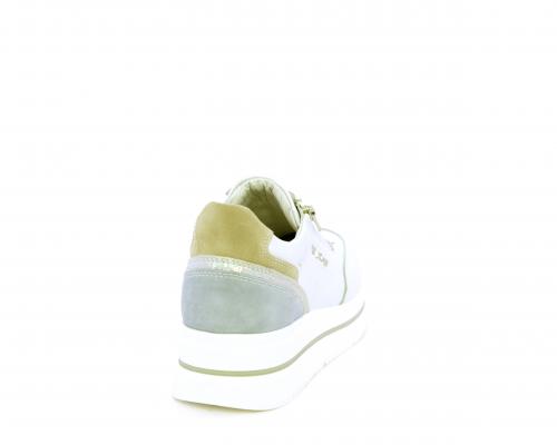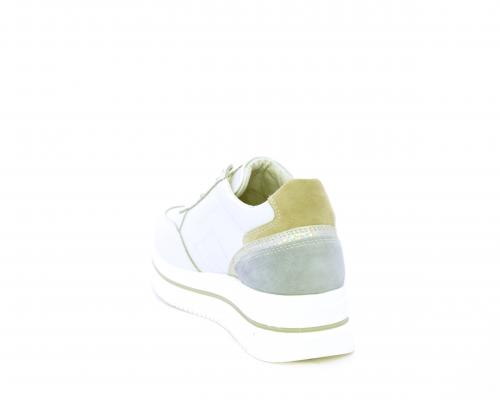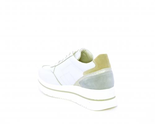 Sneakers con lacci e chiusura laterale per facilitare la calzata, zeppa e plateaux in gomma, tomaia in pelle con parte in suede colorata dietro altallone, sottopiede e fodera interna in pelle, fusbet estraibile in poliuretano Dry-Go, che oltre a svolgere azione di assorbimento del sudore e rapida asciugatura mantenendo il piede sempre asciutto, adesso offre anche la funzione memory che modellandosi delicatamente al piede dona confort e benessere.