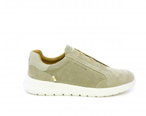 Sneakers senza lacci con elastico sul collo del piede, tomaia in suede, sottopiede e fodera interna in pelle, fusbet estraibile con memory per donare massimo confort durante la camminata ed elevata flessibilità .
