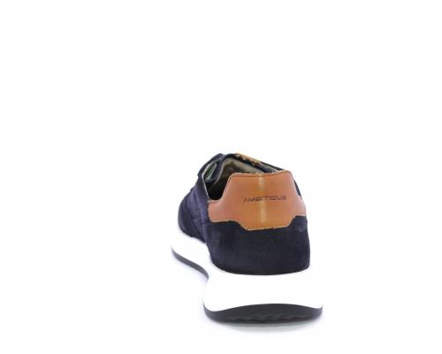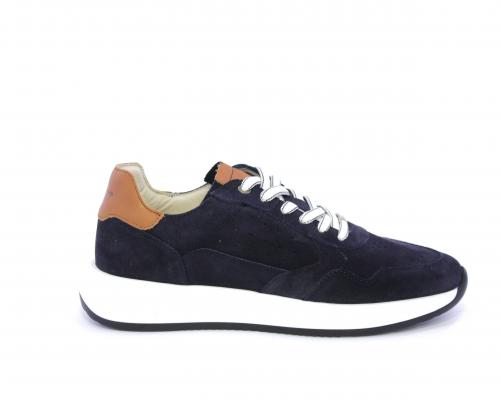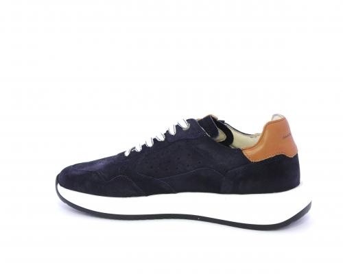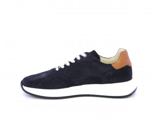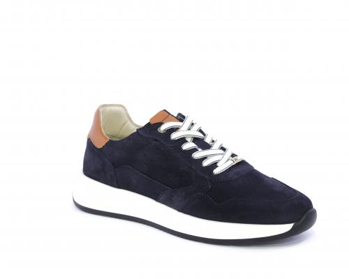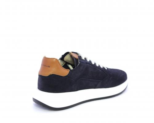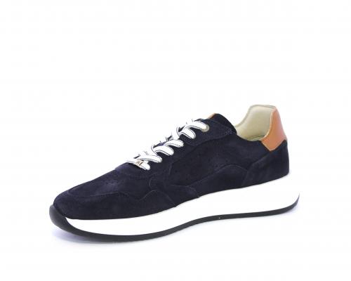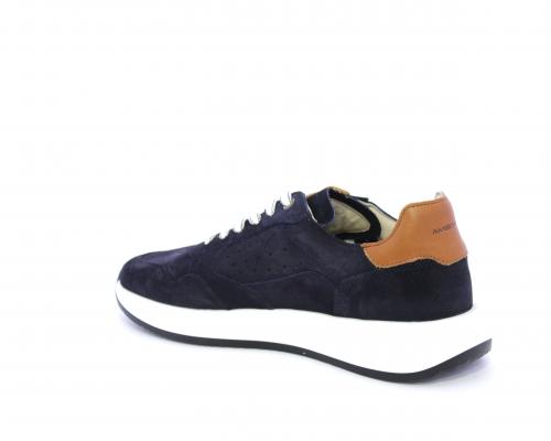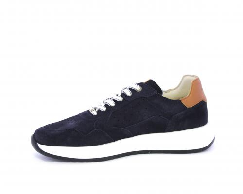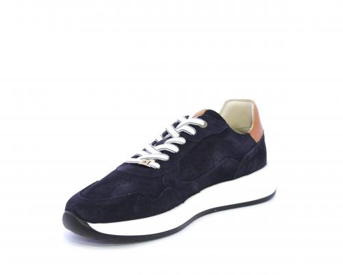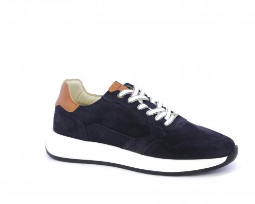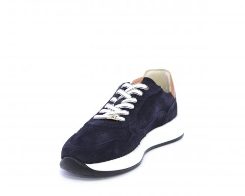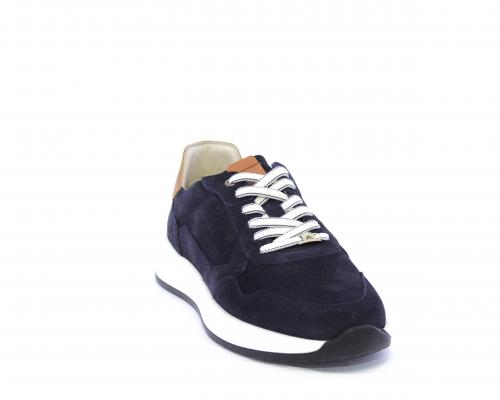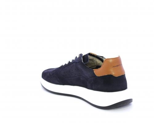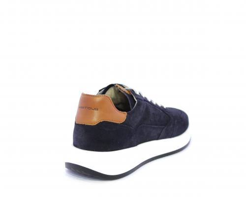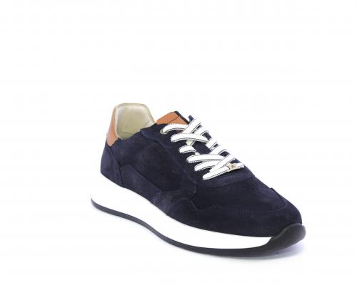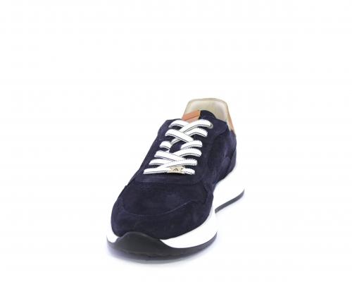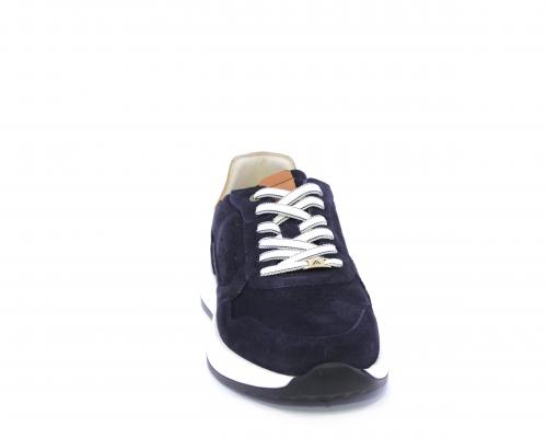 Sneakers con doppio laccio un paio bianco e un paio blu, tomaia in suede con rifinitura dietro al tallone in pelle, fondo in gomma, sottopiede e fodera interna in pelle, fusbet in memory per donare confort e benessere durante la camminata.